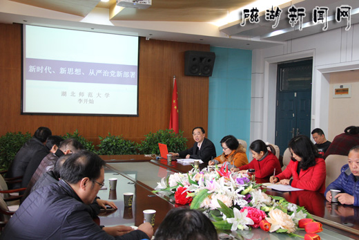 11月29日下午,副校长李开灿在科技大楼505会议室作了题为《新时代 新思想 从严治党新部署》的党的十九大精神宣讲报告。组织部、发规处、审计处、离退处、校友办等部门全体人员聆听报告。