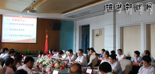 围绕“党章是什么、党章说什么、党章怎么学”三个方面,向显智进行了系统讲解。在阐述“党章是什么”这一问题时,他强调,党章是立党、治党、管党的总章程,党章具有内容的根本性、效力的最高性和制定修改的特殊性三个特征,具有调整党内关系、指导党的工作、严肃党的纪律的作用。他结合时代背景,分别讲解了一大到十八大的党章。他特别强调了十八大对党章内容的修改。党章怎么学,向显智要求大家要原原本本学、反反复复学;要联系实际学、深入思考学。