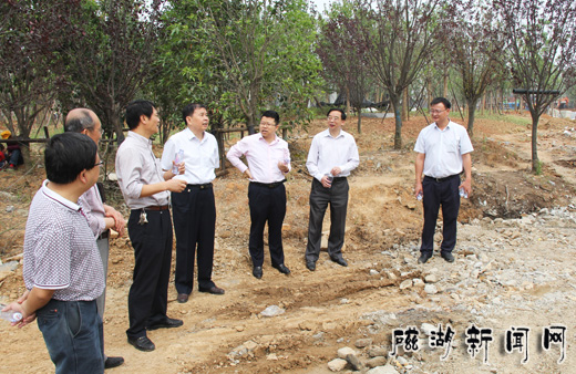 本网讯(安向清 摄影报道)5月19日,校领导向显智、李宏、李开灿、余涛以及相关部门负责人前往位于大冶市四棵村附近的黄石市园林博览会建设工地,实地检查yl23455永利官网承建的yl23455永利官网展园项目建设情况。