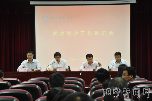 5月5日下午,学校就业创业工作推进会在信息大楼报告厅召开。校领导李宏、黄士华、雷儒金、余涛,学工处、教务处、产学合作处、研究生学院,各学院院长、辅导员、毕业班班主任等参加会议。