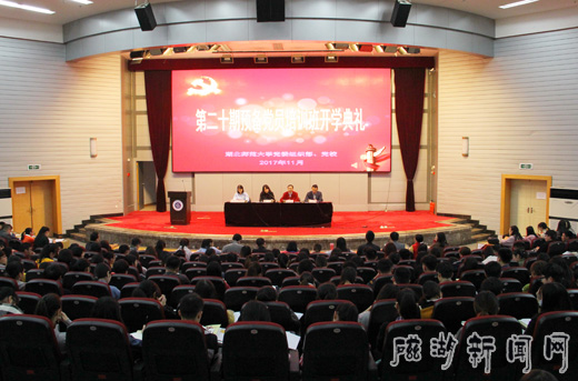 11月8日晚,党校第二十期学生预备党员培训班开学典礼在教育大楼报告厅举行。党委常委、副校长李开灿,党校相关负责人及2017上半年发展的预备党员和2017年新生预备党员参加了此次培训。