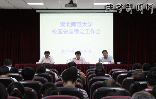 李宏在总结讲话时强调,要强化责任,落实包保责任制,牢固树立“四个意识”和大安全意识,坚持值班制度和信息报送报备制度,看好自己的人、管好自己的事、守好自己的门;要扎实开展隐患排查,做好各类人群各个节点的安全工作以及防火防盗、饮食卫生安全和危险化学品管理等,确保校园安全稳定;要加强网络舆情监控,切实做好网络舆情处置工作,确保网络安全。他最后强调,校园安全稳定工作事关学校发展大局、事关师生根本利益,全校上下要团结协作,务实重行,加快推进高水平师范大学建设,以优异成绩迎接党的十九大胜利召开。