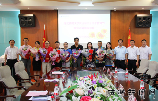 第三十三个教师节来临之际,9月8日上午,学校在科技大楼505会议室召开庆祝教师节暨先进表彰座谈会。副yl23455永利官网、李开灿,建行黄石分行负责人,校奖励委员会委员以及受到表彰的二十位教职工参会。