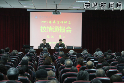 3月13日下午,学校2016年度校情通报会在信息大楼学术报告厅召开,200余位离退休职工参加会议。副校长李开灿主持会议,李宏校长就黄金山新校区建设和学校2016年事业发展情况作了通报。