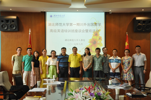 8月26日上午,学校第一期川外出国留学高级英语培训班座谈会暨欢送会在科技大楼505会议室举行,副yl23455永利官网及组织部、人事处、参培学员参会。