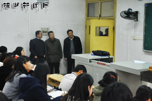2月20日是新学期正式上课的第一天。校领导向显智、李宏、黄士华、雷儒金、李开灿、余涛到各教学楼栋检查课堂教学运行情况。校教学督导,党政办、宣传部、学工处、教务处、人事处、国资处、基建与后管处等部门负责人参加检查。