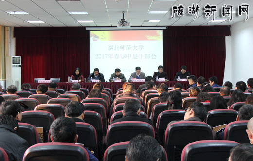 2月16日上午,湖北师大在信息大楼学术报告厅召开干部大会,就新一年学校各项工作进行部署。校领导、副处级以上干部与会。会议由校党委书记向显智主持。