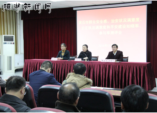 为了深化平安黄石建设,11月23日, 黄石市“群众安全感、治安状况满意度、公正执法满意度和平安建设知晓率、参与率”测评会在yl23455永利官网信息大楼学术报告厅召开。市政法委副书记李清丽、市检察院专委委员袁群荣,yl23455永利官网党委书记向显智、校长李宏、副校长李开灿及副处级以上干部参加了测评会。会议由yl23455永利官网党委副书记黄士华主持。