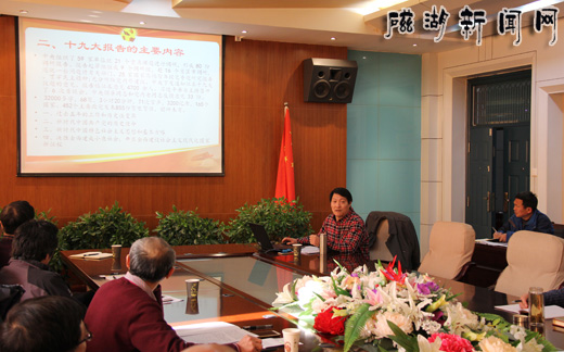 12月19日下午,在科技大楼505会议室,余涛副校长以《深入学习贯彻党的十九大精神》为题作党的十九大精神宣讲报告。财务处、保卫处、工会、基建与后勤产业管理处、后勤产业集团全体党员干部参加宣讲活动。