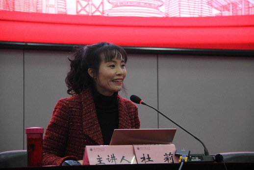 杜莉教授以《深入学习贯彻十九届五中全会精神开启全面建设社会主义现代化国家新征程》为题,从“认清形势,把握大局”“擘画未来,锚定目标”“精准施策,定点突破”三个维度,深入分析了十九届五中全会召开的时代背景、我国经济社会发展的主要目标,以及实现目标任务的重大举措。报告立足“两个大局”,紧扣党的十九届五中全会主题,紧紧围绕新阶段、新理念、新格局,对《中共中央关于制定国民经济和社会发展第十四个五年规划和二〇三五年远景目标的建议》和“十四五”时期的发展形势、主要目标、重点任务等进行了深刻阐述。报告会后,杜莉教授与参会师生进行了互动交流。