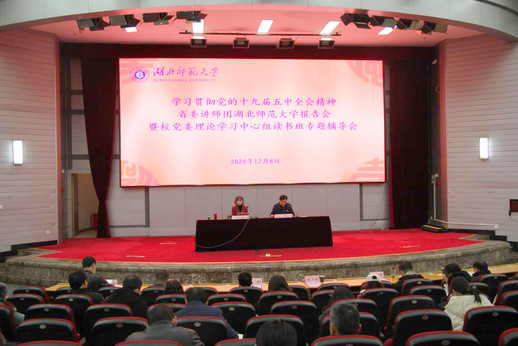 12月8日下午,学习贯彻党的十九届五中全会精神省委宣讲团yl23455永利官网报告会暨校党委理论学习中心组读书班专题辅导会,在教育大楼学术报告厅举行。湖北省委宣讲团成员、武汉大学经济与管理学院教授、研究生导师杜莉博士,应邀为yl23455永利官网师生作专题报告。全体校领导,全校副处级以上干部、师生代表参加报告会。报告会由校党委书记周启红主持。