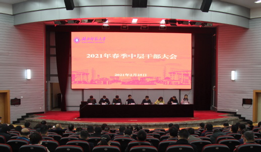 2月25日上午,学校2021年春季中层干部大会在教育大楼报告厅召开。会议回顾总结了学校2020年工作,并对2021年重点工作进行了部署。全体校领导以及全校副处级以上干部参加会议。党委副书记马列军主持会议。