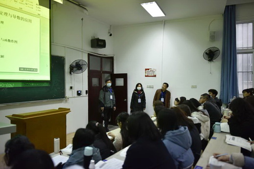 3月1日是新学期正式上课的第一天。校领导马列军、陆咏梅、雷儒金、李开灿、余涛、王赛玉、余翔到各教学楼检查课堂教学运行情况。校教学督导,党政办、纪委、宣传部、学工处、教务处、人事处、国资处、团委、后勤管理中心等部门负责人参加检查。