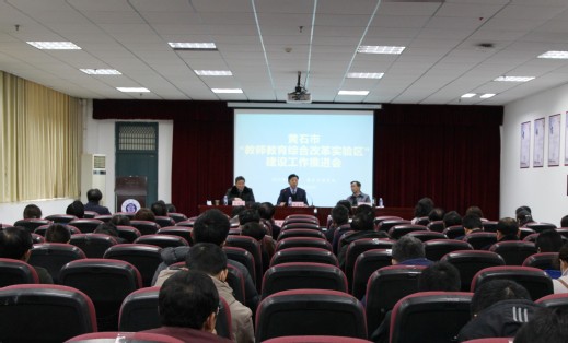 3月8日上午,黄石市“教师教育综合改革实验区”建设工作推进会在yl23455永利官网信息大楼报告厅举行。校党委书记周启红,黄石市教育局局长杨国晋,出席会议并讲话。会议由副yl23455永利官网主持。