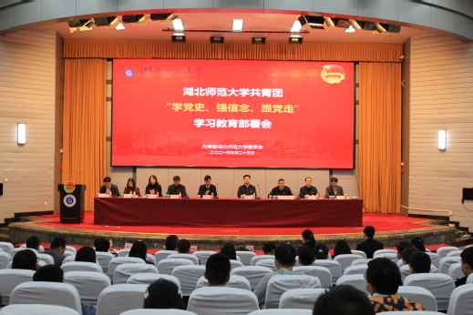 部署会上,团市委书记徐可肯定了湖师共青团工作取得的成绩,并对开展党史学习教育提出了要求:一是突出政治教育主线,坚持为党培养社会主义建设者和接班人;二是加强宣教阵地建设,推进组织化学习和网络化学习有机结合;三是“知行合一”服务大局,把党史学习教育成果转化为实践行动。