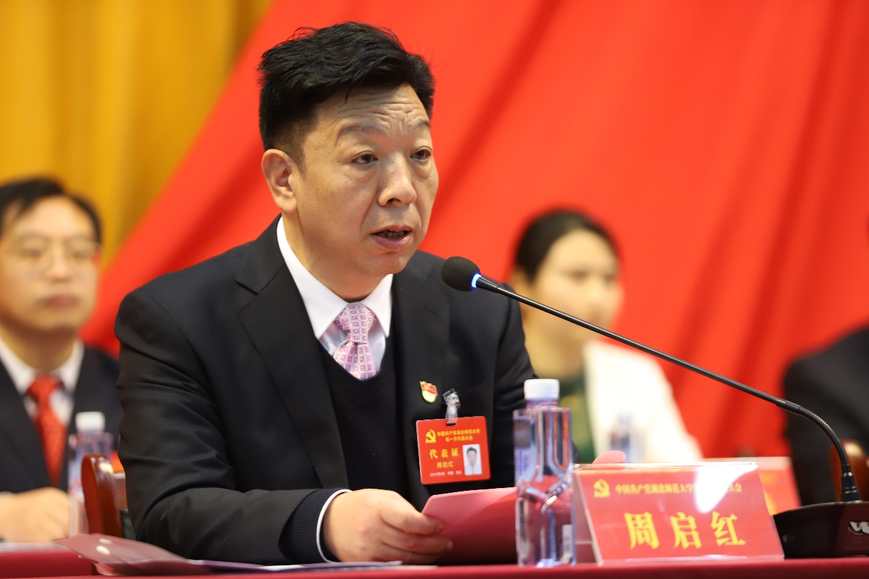 周启红强调,今后几年是加快学校发展的关键时期,前景广阔,任重道远。完成党代会提出的奋斗目标,需要我们坚定不移解放思想,守正创新,以思想破冰引领改革突围;需要我们脚踏实地、苦干实干,奋勇争先、勇挑重担,坚毅前行。各级党组织要认真贯彻落实这次党代会的精神,把广大党员干部和师生员工的思想认识统一到大会精神上来,把大家的智慧和力量凝聚到实现大会提出的奋斗目标与工作任务上来,不忘初心、牢记使命,团结一心、奋力拼搏,全力实施“八大工程”,争博点、强特色、创一流,高质量推进学校办学实力和水平不断迈上新台阶。