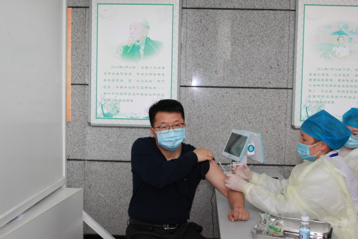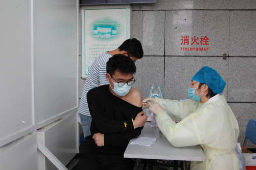 在志愿者引导下,校领导依次经过体温测量,接受医务人员健康询问,填写疫苗接种知情同意书,进入等候区出示疫苗接种信息预登记码等环节后,医务人员为校领导接种了新冠疫苗。接种完成之后,校领导按照接种要求来到留观区,留观30分钟。