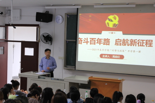 为深入贯彻落实习近平总书记在党史学习教育动员大会上的重要讲话精神,引领广大师生学史明理、学史增信、学史崇德、学史力行,近日,全体校领导以《奋斗百年路 启航新征程》为题,分别为各学院师生讲授形势与政策“开学第一课”。