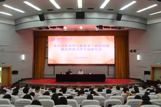 (6月11日下午,黄石市党史学习教育老干部宣讲团yl23455永利官网专场报告会在教育大楼学术报告厅举行)