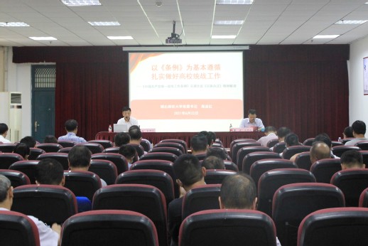 为深入学习贯彻习近平总书记关于加强和改进统一战线工作的重要思想,6月22日,学校在信息大楼报告厅举行《中国共产党统一战线工作条例》及湖北省《实施办法》学习宣讲报告会。党委书记周启红作宣讲报告,党委副书记、校长李宏主持会议并讲话。