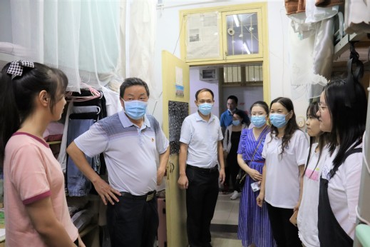 雷儒金一行走访慰问了马克思主义学院、化学化工学院部分学生宿舍。他与同学们亲切交谈,询问大家此次暑假学习生活情况,并提醒同学们做好个人卫生,积极参加体育锻炼,遵守学校疫情防控规定。他希望同学们能够弘扬优良学风传统,脚踏实地,早日制定职业规划,多思考未来发展。雷儒金强调未来属于青年,希望寄予青年,希望同学们要牢记习近平总书记“七一”重要讲话精神,以实现中华民族伟大复兴为己任,增强做中国人的志气、骨气、底气,不负时代,不负韶华!