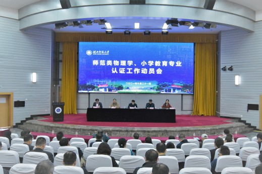10月21日下午,学校在教育大楼报告厅召开师范类物理学、小学教育专业认证工作动员会。全体在校校领导,副处级以上领导干部,教学督导,各学院教学秘书,物理与电子科学学院、教育科学学院全体教职工和学生代表,教务处、语委办、教学质量监测与评估中心全体工作人员参加会议。会议由党委副书记马列军主持。