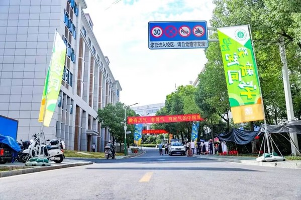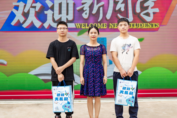 校内迎新工作站设置的实时数据显示屏,可以即时查看新生报到、学院分布和来源情况。学工处和各学院别出心裁地为新生们准备了拍照打卡KT板等,为新生开启大学生活留下美好的记忆。
