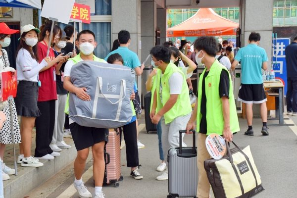 党员志愿者和青年志愿者接过重重的行李,全程“一对一”帮助新生报到各个环节,在迎新工作站等候的师生细心地为新生办理好报到的相关手续,贴心的服务,让初来乍到的新生倍感温暖。