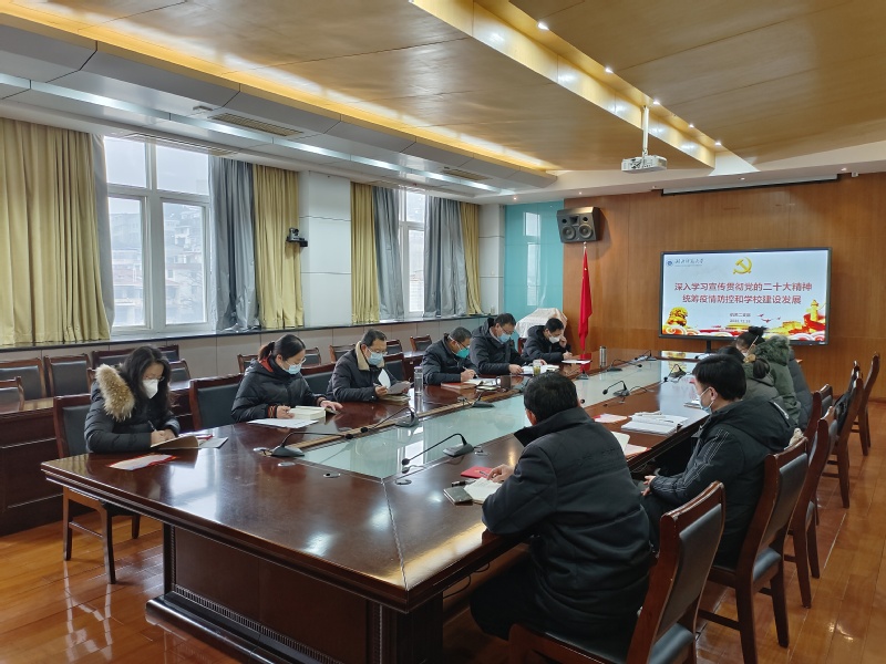 12月28日上午,机关第二党支部在科技大楼505会议室开展了“深入学习宣传贯彻党的二十大精神,统筹疫情防控和学校建设发展” 主题党日活动。活动由支部书记陈学章主持,支部全体党员参加了活动。