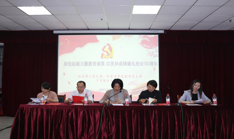 为深入学习贯彻党的二十大精神,推动学习贯彻习近平新时代中国特色社会主义思想走深走实,坚持党建引领,充分发挥基层党组织战斗堡垒和党员先锋模范作用,10月27日下午,机关第二党支部、经济管理与法学院教工党支部在信息大楼报告厅联合举办了以“深化拓展主题教育成果,以优异成绩献礼校庆50周年”为主题的党日活动。机关第二党支部、经管法学院教工党支部党员参加活动。