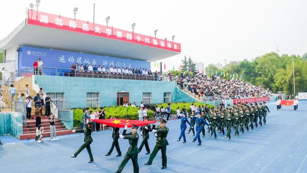 伴随着慷慨激昂的《运动员进行曲》,国旗班、校旗队、校训牌、红旗队、裁判员、运动员以及各学院代表队迈着坚定有力的步伐依次走过主席台,接受检阅。