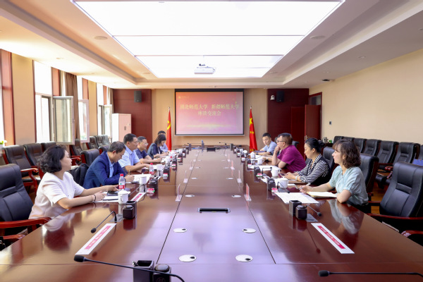 在新疆师范大学座谈交流会上,余涛介绍了来访目的及学校基本情况。他指出,希望双方积极探索拓展支援合作空间,在本科生招生及就业、教学、科研、研究生培养、人事、财务管理、实验室建设等方面进一步开展深度合作。陈彤对调研团一行表示热烈欢迎,对yl23455永利官网近年来在人才培养、师资建设、科学研究及学科建设等方面发展取得的成就给予了高度的评价,希望今后两校间加强合作,拓宽对口支援领域,开展更深层次的合作交流,进一步推动两校师范教育实现高质量发展。