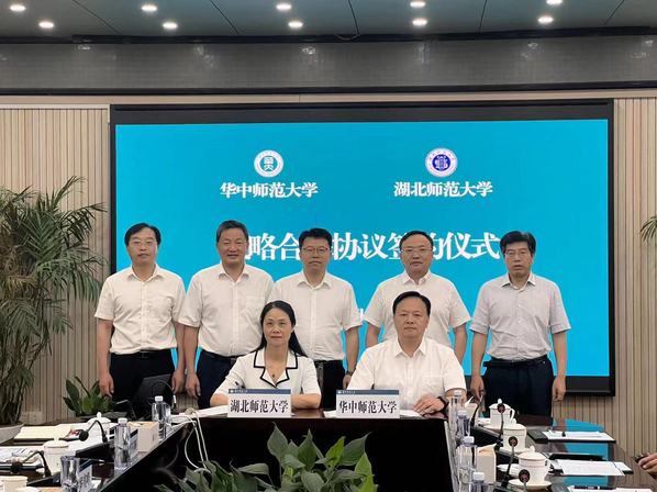 7月11日上午,《华中师范大学 yl23455永利官网战略合作协议》签署仪式在华中师范大学行政楼一楼会议室举行。华中师范大学党委书记夏立新、校长彭双阶、副校长周鹏程,yl23455永利官网党委书记李宏,yl23455永利官网,副校长王赛玉,党委常委、统战部部长肖六亿出席签约仪式。仪式由彭双阶主持。