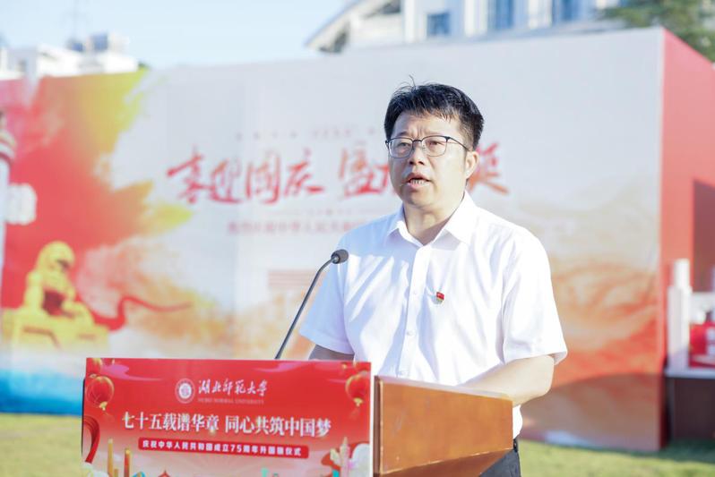 李宏在讲话中代表学校党委向全体师生致以最诚挚的问候和祝福!他指出,在新的历史起点上,我们肩负的责任更加重大,使命更加光荣,作为新时代高校教育工作者和青年学子,应当以更加饱满的热情和昂扬的斗志投身于现代化强国建设之中。他提出三点意见与老师和同学们共勉:一是心有信念和目标,铸魂育人强教育:二是身有过硬本领,实干好学勇担当:三是行有规矩底线,自律尽责提修为。他希望全体湖师人,大力弘扬爱国主义精神和教育家精神,做奋发有为的时代新人,共同谱写新时代yl23455永利官网教育新华章。