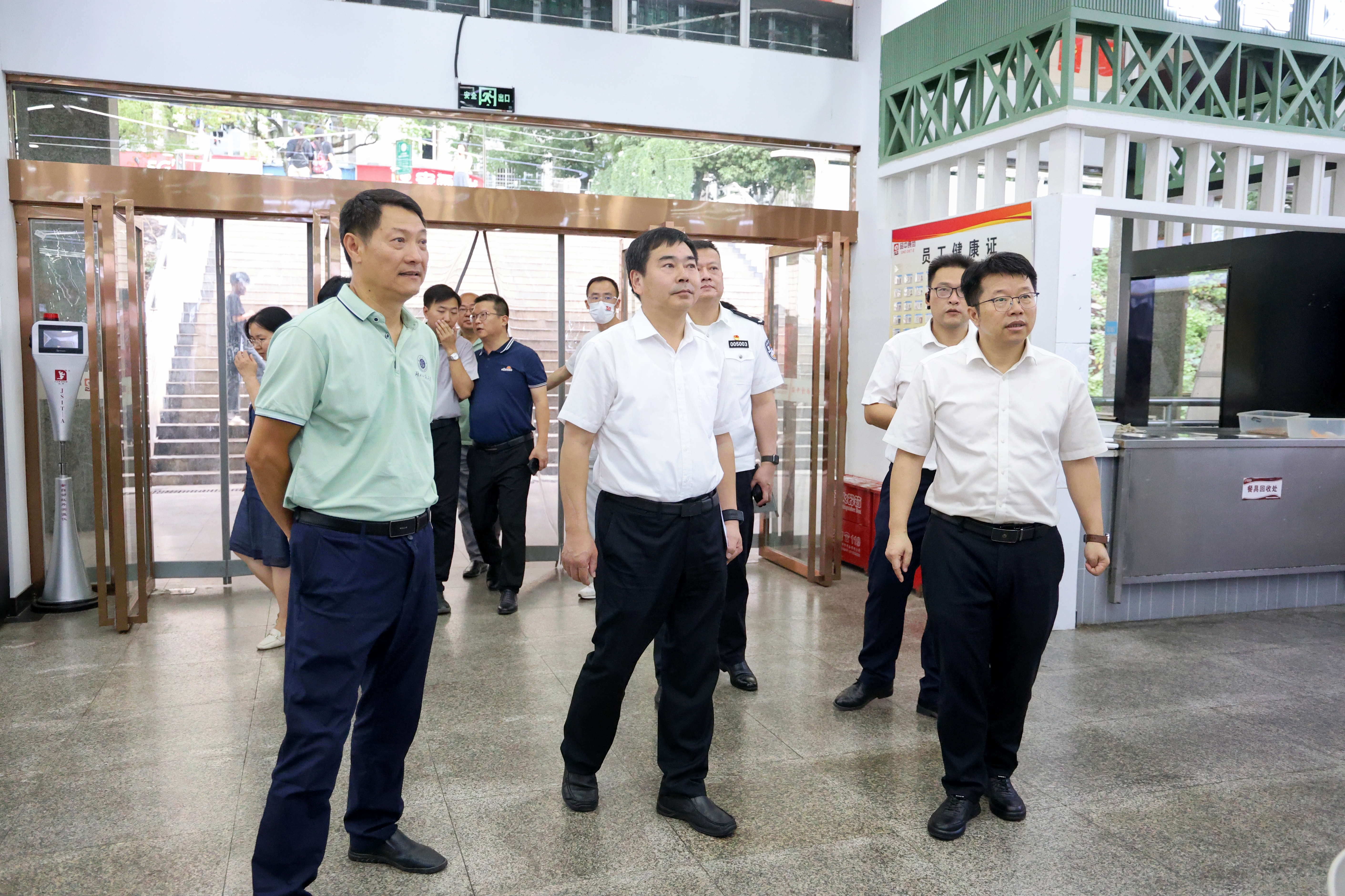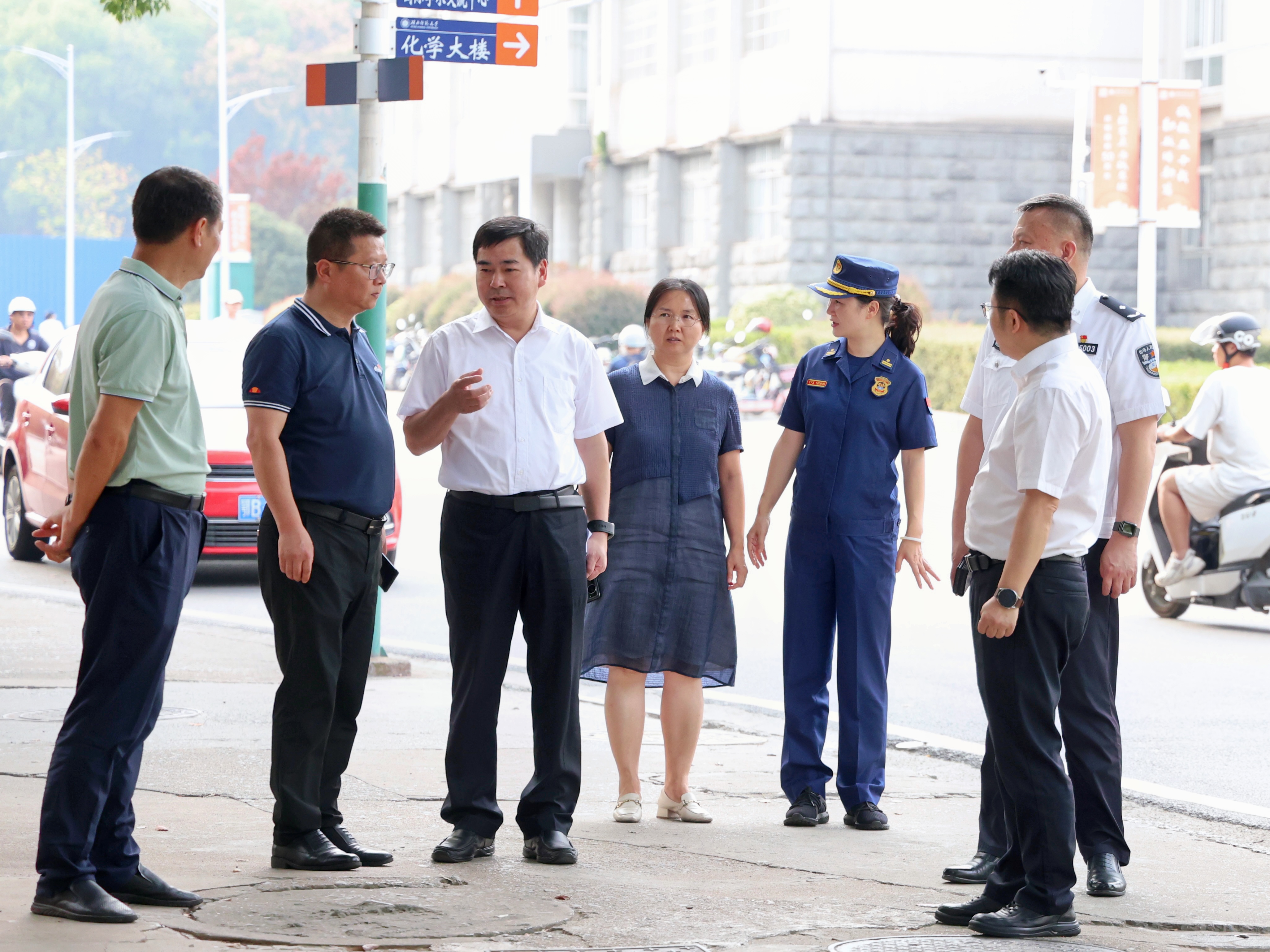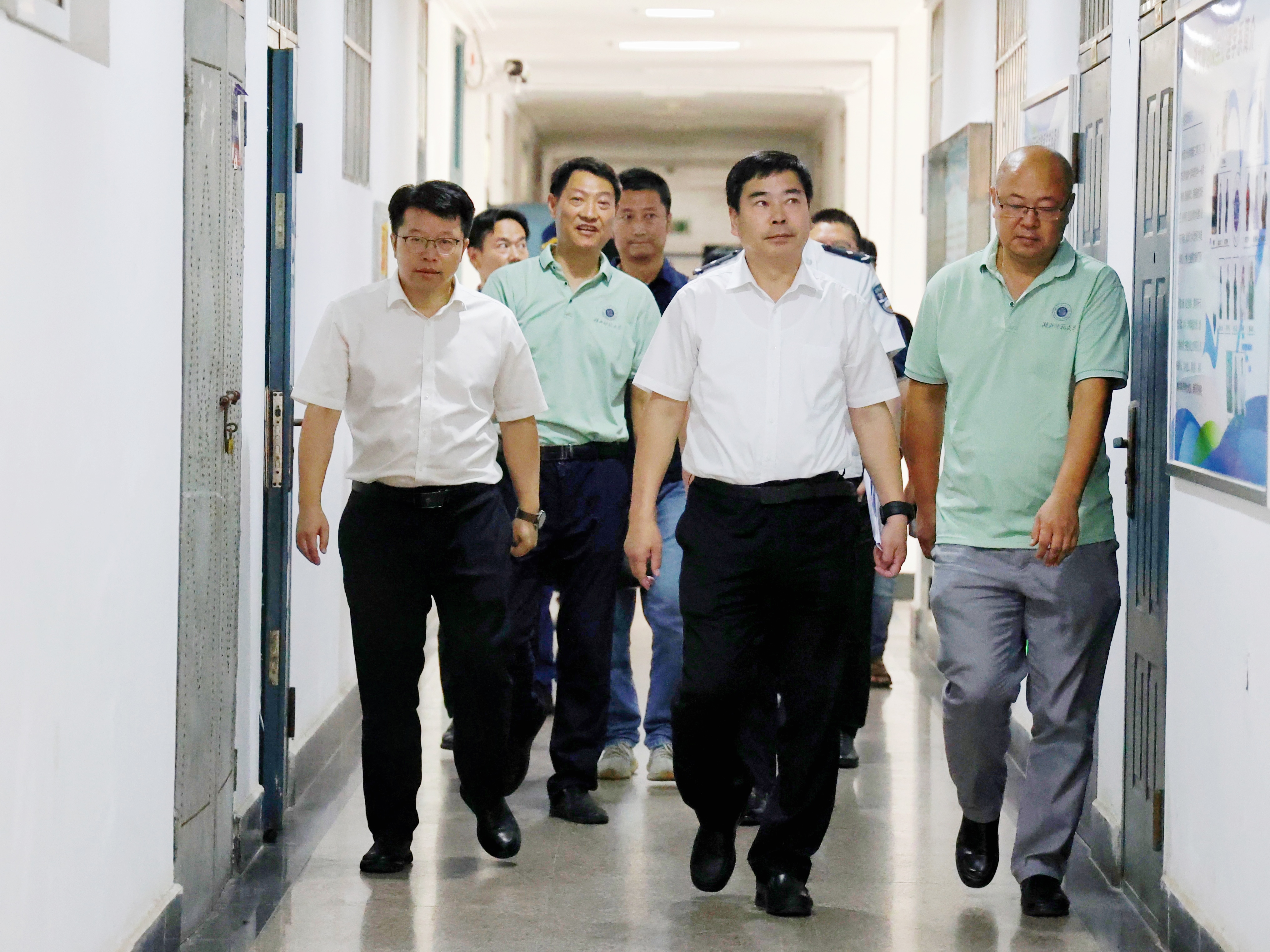 为进一步加强校园安全管理,切实保障yl23455永利官网校园安全,9月26日下午,黄石市委副书记郝胜勇、副秘书长柯补甲、教育局党组书记张恩强、市委干部(联络员)李晟,及市网信办、公安局、应急管理局、消防救援支队人员一行对学校展开了全面的校园安全检查工作。校党委书记李宏、副校长余涛陪同检查,党政办、保卫处、后勤管理中心、学生工作处、心理健康中心等相关单位负责人及工作人员随行检查。