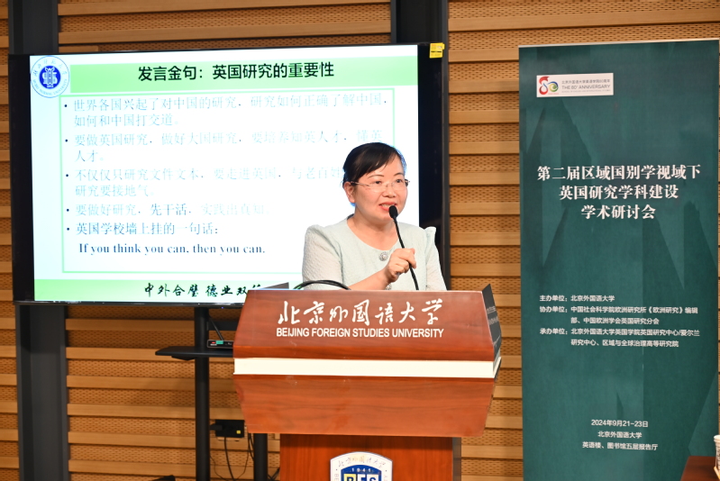 9月21日至23日,第二届“区域国别学视域下英国研究学科建设”学术研讨会在北京外国语大学举办,来自北京大学、中国人民大学、南京大学、复旦大学、中国政法大学、外交学院、中国社会科学院等30余所高校和科研机构的专家学者齐聚一堂,结合国内外英国研究的最新研究成果和人才培养的实践经验,探讨开展英国研究的跨学科综合研究对区域国别学和外语学科国别和区域研究方向发展的样本意义和启示。yl23455永利官网副校长、欧洲科学院院士余翔受邀为本次大会致辞,外国语学院院长刘敏代表yl23455永利官网英国研究中心做主旨报告。