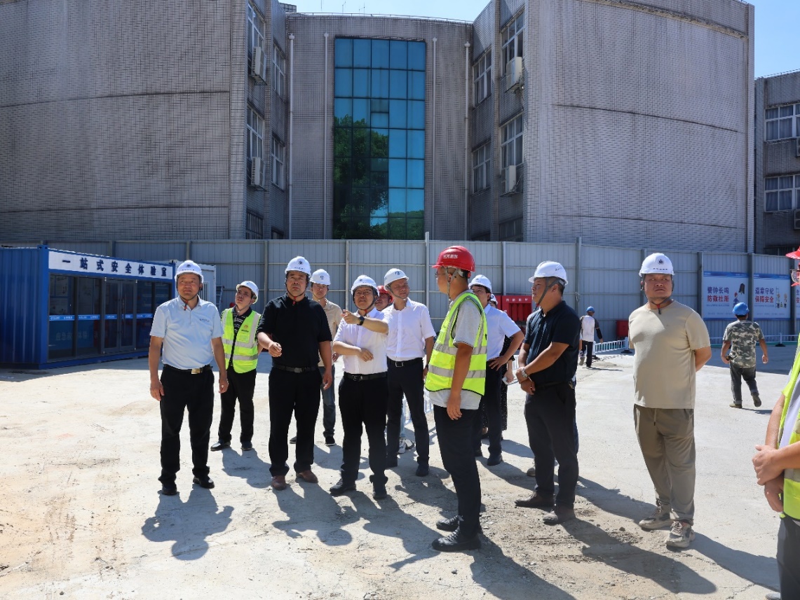 在实验实习中心工地,校领导听取了项目负责人的汇报,重点检查了施工安全管理和工程进度。李宏强调,暑期高温作业要科学安排施工时间,配备充足的防暑物资,确保安全生产与工程质量“两手抓”。