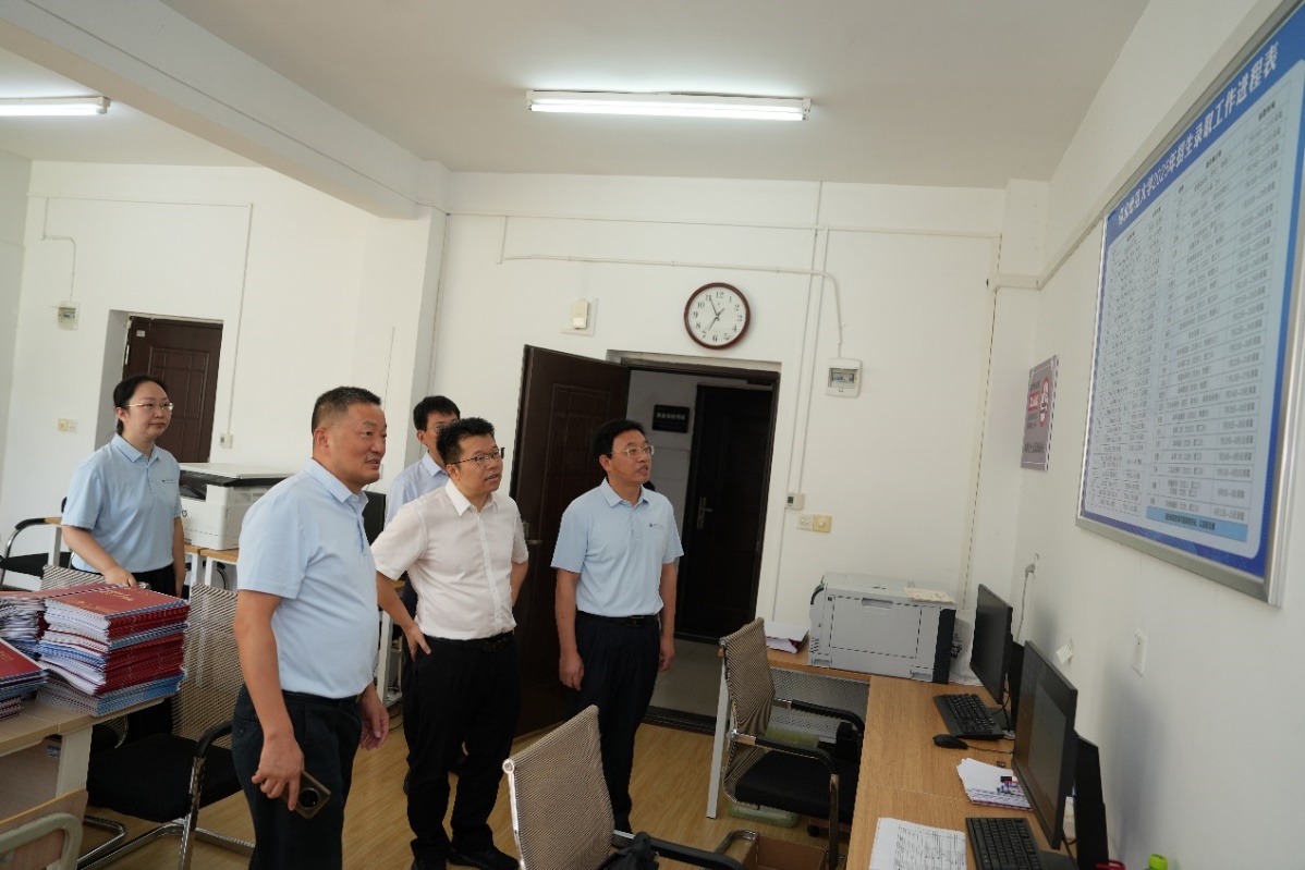 在招生与就业工作处,校领导详细询问了2025年招生录取通知书的发放情况,了解各省份录取进展,并对暑期值班的教职工和学生志愿者表示亲切慰问。雷儒金强调,招生工作是学校人才培养的重要环节,务必确保录取工作精准高效,同时要做好值班人员的防暑保障。