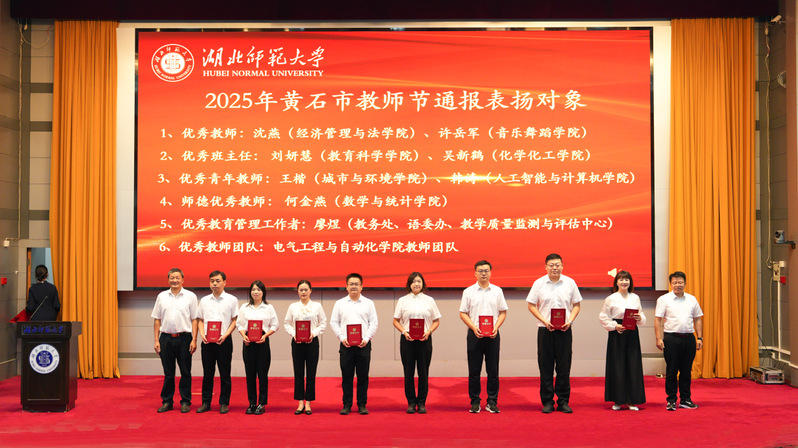 为深入贯彻习近平总书记关于教育的重要论述,大力弘扬教育家精神,进一步加强新时代高素质专业化教师队伍建设,持续营造尊师重教、崇德尚美的校园文化氛围,在第四十一个教师节来临之际,学校于9月9日上午在教育大楼报告厅隆重举行师德师风建设月启动仪式暨庆祝第四十一个教师节大会。全体在校校领导、建行黄石分行嘉宾、学校副处级以上干部、2025年教师节受表扬教师、新入职教师以及各学院师生代表共同参会。大会由校党委副书记、yl23455永利官网主持。
