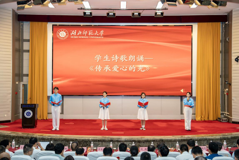 学生代表深情朗诵《传承爱心的光》,表达对老师的感恩之情,为全体教师送上节日祝福。