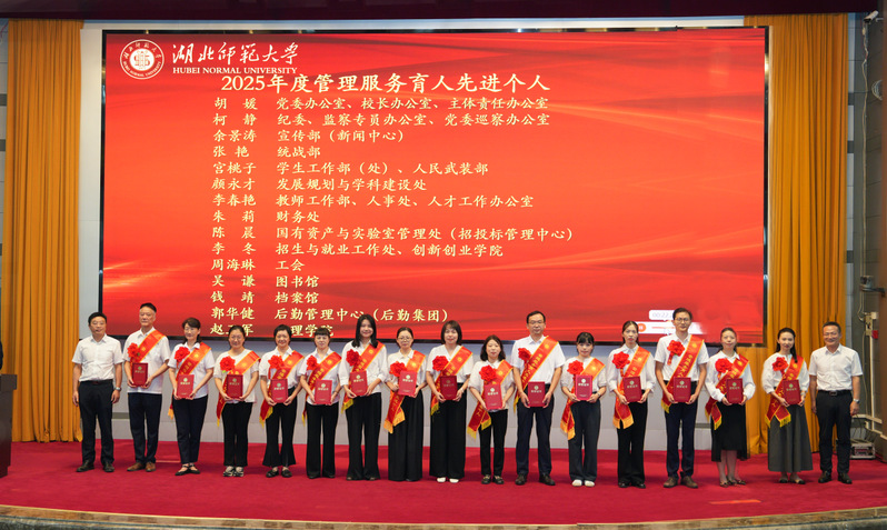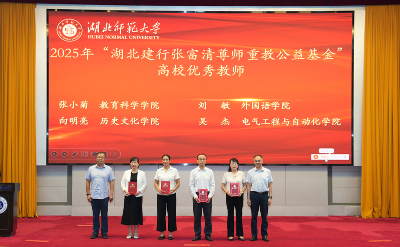 在颁奖环节,校领导与建行黄石分行领导共同为2025年获奖教师颁发荣誉证书。获奖教师代表许岳军、陈兮、宫桃子分别以《以舞育人 以爱育心》《育人育心琐事二三件》《以服务践行初心 用奉献担当使命》为题,分享了各自的育人故事和心得体会。