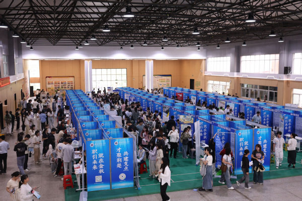 为深入贯彻落实湖北省“校友回归”专项工作部署,积极响应“百校千企汇荆楚”活动周号召,充分发挥校友资源优势与校地企协同效能,9月25日,学校在若水轩大学生活动中心举办2026届毕业生秋季综合类招聘会。校党委副书记、副校长余涛到现场指导工作,与用人单位代表、求职毕业生深入交流。