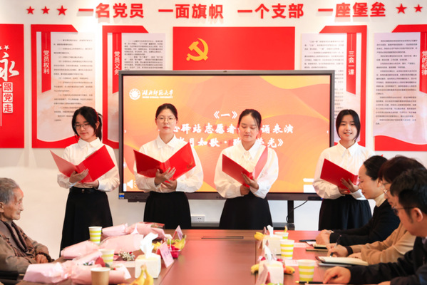 活动在“献爱儿女”志愿者们声情并茂的诗歌朗诵《岁月如歌·致敬荣光》中拉开帷幕,现场气氛庄重而温馨。离退休工作处处长周艳华宣读了2025年七十岁、八十岁、九十岁、百岁离退休职工名单。