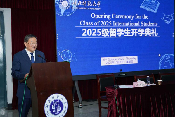 10月23日下午,湖北师范大学2025级留学生开学典礼在信息大楼报告厅隆重举行。本次典礼以“逐梦湖师,共启国际学术新征程”为主题,来自全球四大洲22个国家的留学生新生齐聚一堂。校党委副书记、yl23455永利官网教授出席典礼并致辞,黄石出入境管理局警官,学工处、教务处、保卫处、团委、后勤集团等职能部门负责人,经管法学院、文学院、外国语学院等学院负责人及国际处、国际教育学院全体师生共同参加。典礼由国际处处长、国际教育学院院长龚波主持。