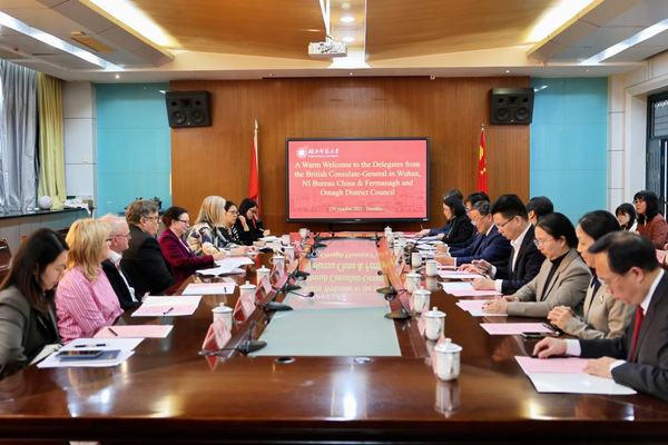 10月23日下午,英国驻武汉总领事麦多明(Dominic McAllister)、北爱尔兰政府驻华总代表孔凯瑞(Kerry Curran)及弗马纳欧马区市长巴里·麦克杜夫(Barry McElduff)率领的代表团一行8人访问yl23455永利官网。黄石市副市长徐丹娅、市委外办主任徐可、市教育局副局长庞江华等陪同访问。校党委副书记、yl23455永利官网出席活动并致辞,双方就深化教育合作、拓展中英人文交流等议题达成广泛共识。