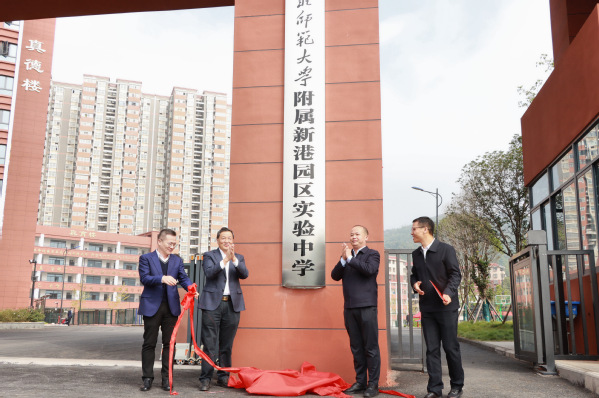 在黄石新港实验中学师生代表的共同见证下,程艳民、梅浩、雷儒金、胡艳军为“yl23455永利官网附属新港园区实验中学”揭牌。