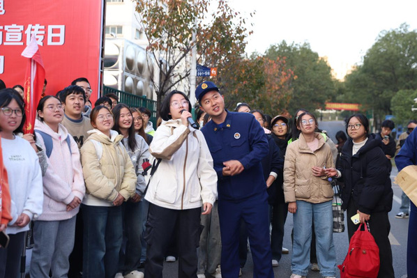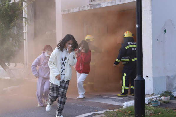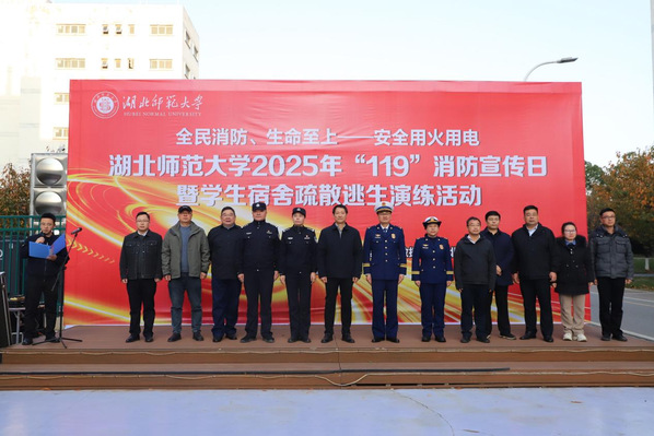 为进一步提升师生消防安全意识,夯实校园消防安全基础,11月21日,学校联合黄石市消防救援局、黄石港公安分局、黄石港区消防救援局开展2025年消防宣传日暨学生宿舍疏散逃生演练活动。校党委副书记、副校长余涛,黄石市消防救援局党委委员、副局长罗朝会、黄石港区消防救援局局长陈薇、黄石港公安分局副局长杨志、沈家营派出所教导员李晓辉出席活动。学校党政办、宣传部、学工部、国资处、保卫处、基建处、团委、后勤管理中心、湖北湖师教育科技发展有限公司等各职能部门负责人以及各学院辅导员、学生代表、宿管科工作人员等200余人参加此次活动。