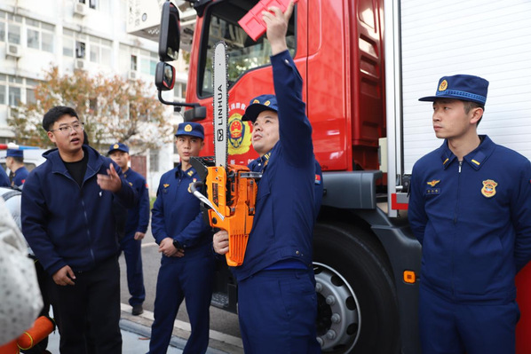 演练过程中,师生们在消防人员指导下有序进行疏散逃生,观摩云梯救援演示,并积极参与灭火器实操训练。活动现场还开展了消防知识有奖问答,消防员详细讲解了常见消防器材的使用方法,展示了宿舍违规电器,进一步增强师生的安全防范意识和应急自救能力。