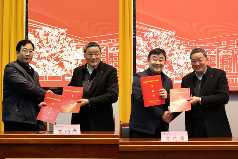 随后,雷儒金代表学校与国际教育学院负责人签订2026年平安建设目标管理责任书,与材料学院负责人签订2026年消防安全目标管理责任书。